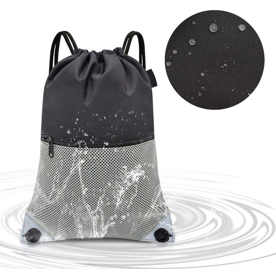 กระเป๋าเป้สะพายหลังแบบเชือกผูก คุณภาพดีที่สุด ผลิตจากโพลีเอสเตอร์ สีดำ เหมาะสำหรับการเดินทางและเล่นกีฬา พร้อมบริการพิมพ์โลโก้ตามแบบที่ต้องการ