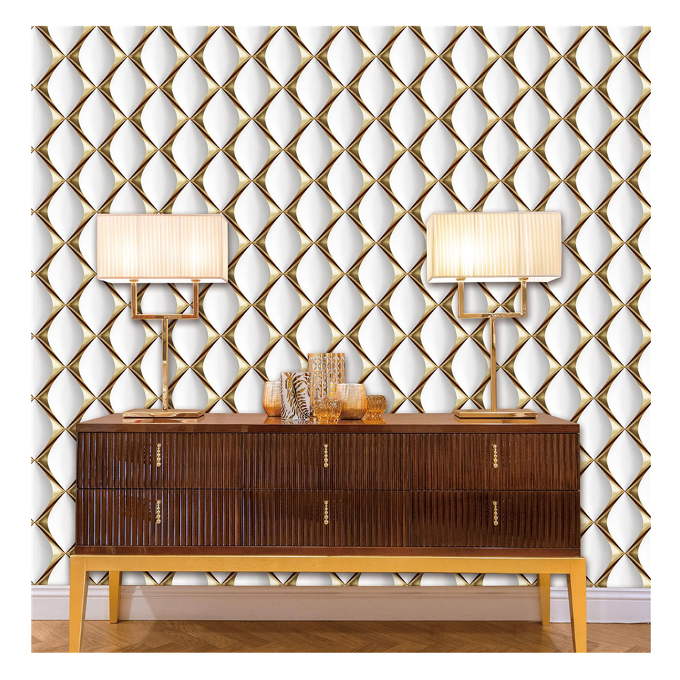 วอลเปเปอร์โลหะสีทองวอลเปเปอร์ติดผนังยอดนิยม3D ตกแต่งบ้านวอลล์เปเปอร์กันน้ำ