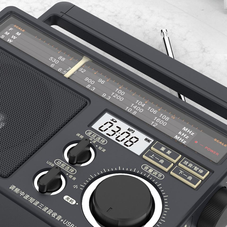 คุณภาพดีที่สุดแบบพกพา วินเทจ ป้องกันการรบกวน กำลังสูง ระดับมืออาชีพ USB/MP3/การ์ด SD สไตล์ย้อนยุค จอแสดงผล LCD ดิจิตอล นาฬิกา