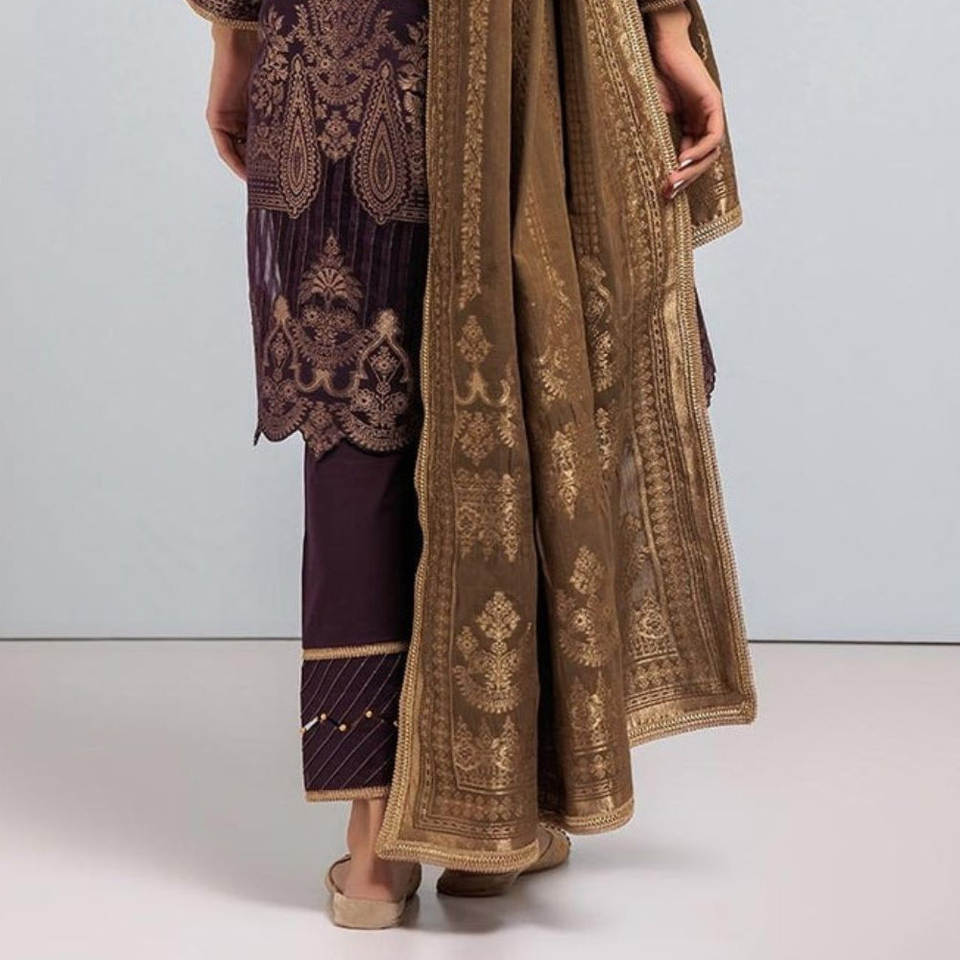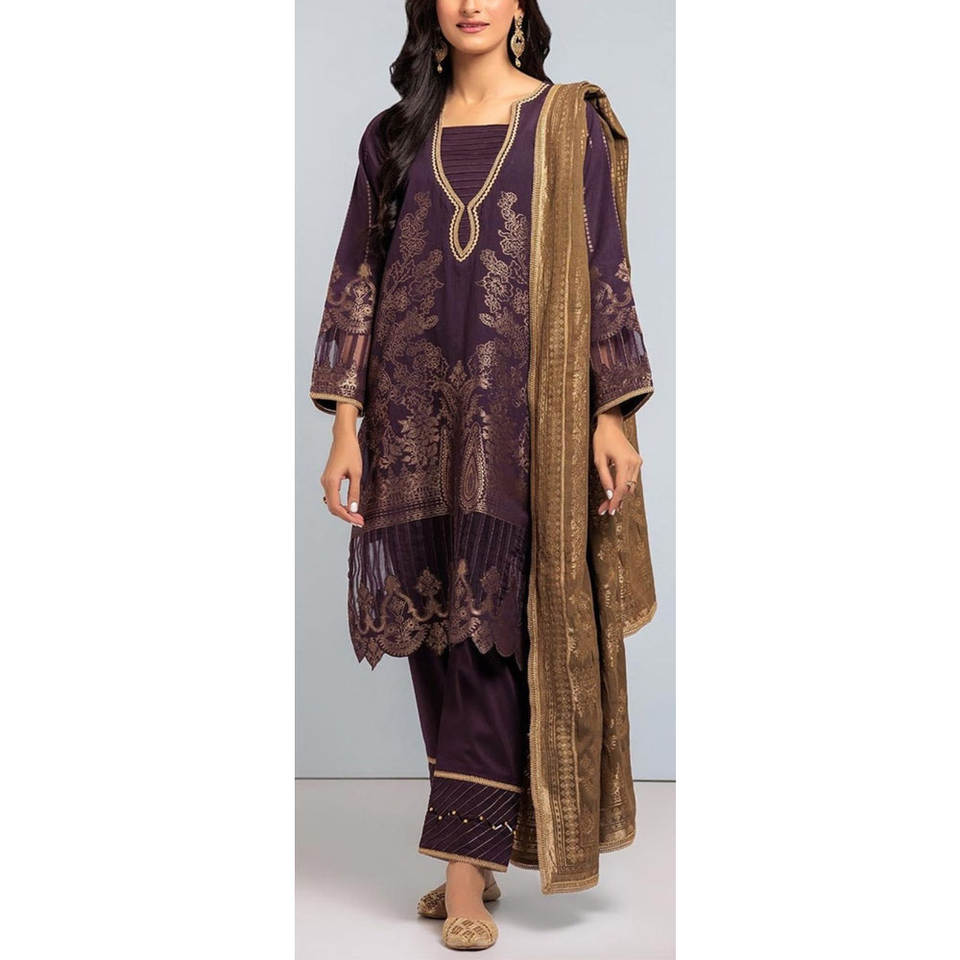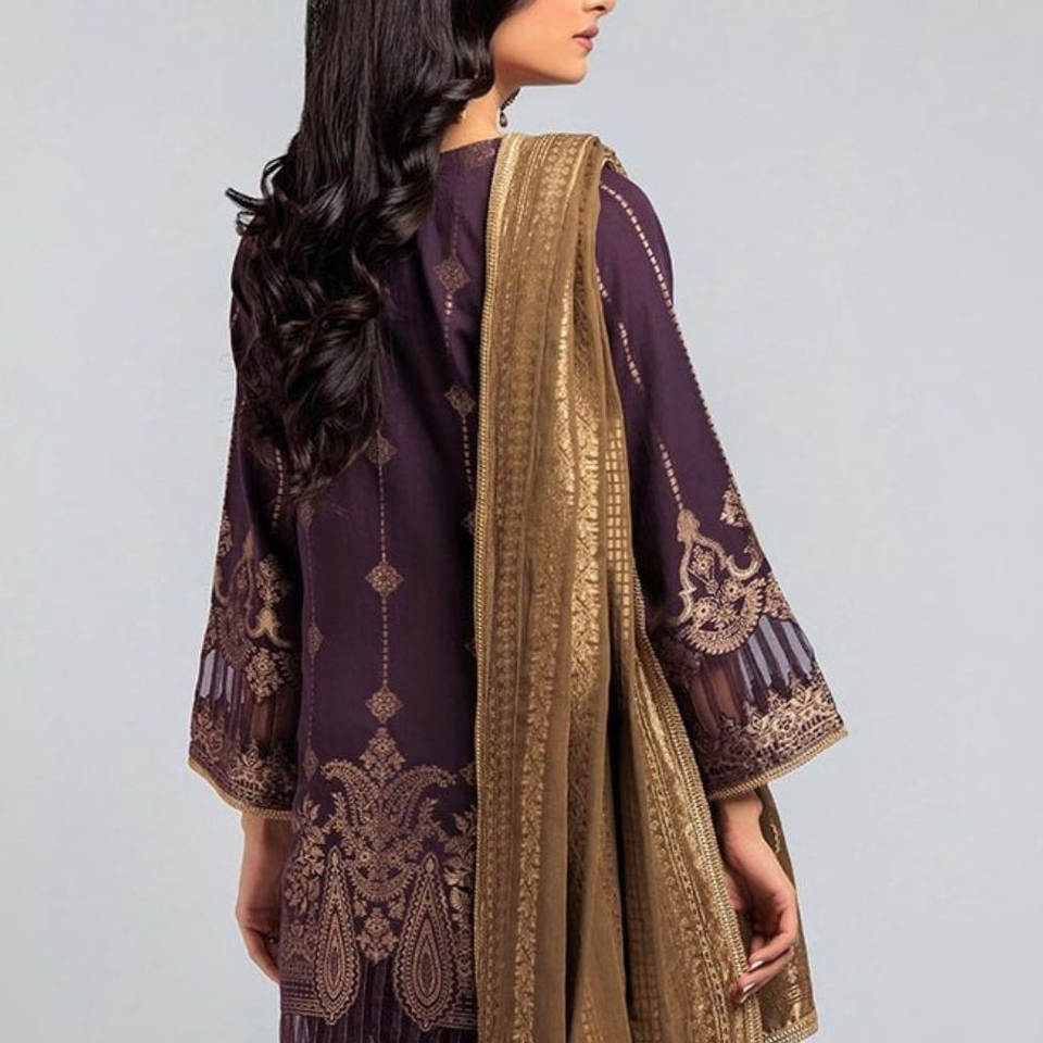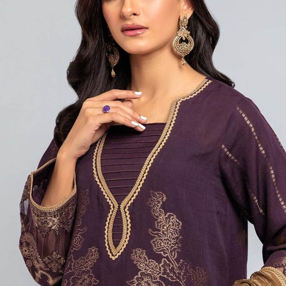 ชุดสูทปากีสถานสำหรับผู้หญิงคอลเลคชั่นกินเวลานานด้วยการตกแต่งกระดุมลูกไม้ดีไซน์ล่าสุด