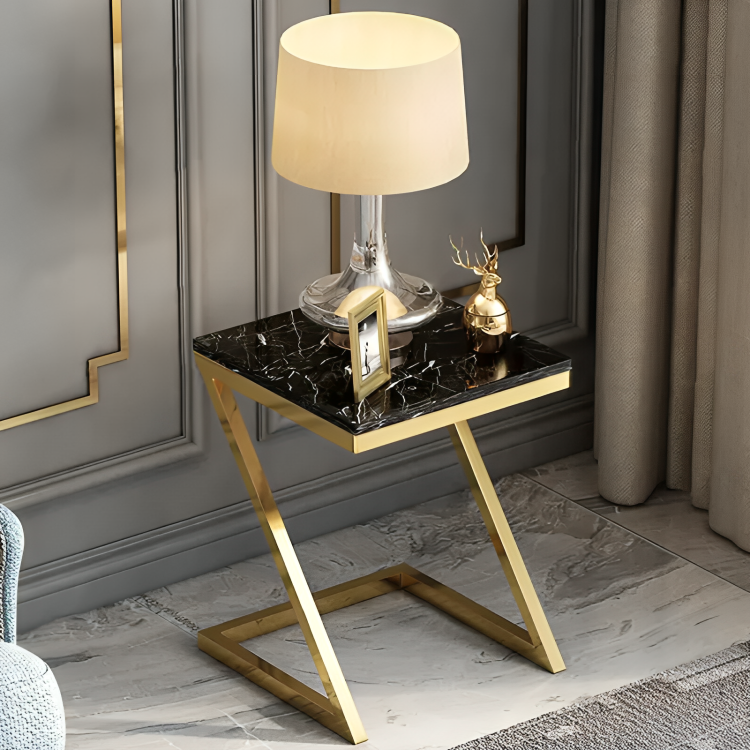 โต๊ะคุณภาพพรีเมียมดีไซน์ทันสมัย ท็อปหินอ่อนสีดำ พร้อมโต๊ะมุมรูปตัว Z สำหรับห้องนั่งเล่น ห้องรับแขก