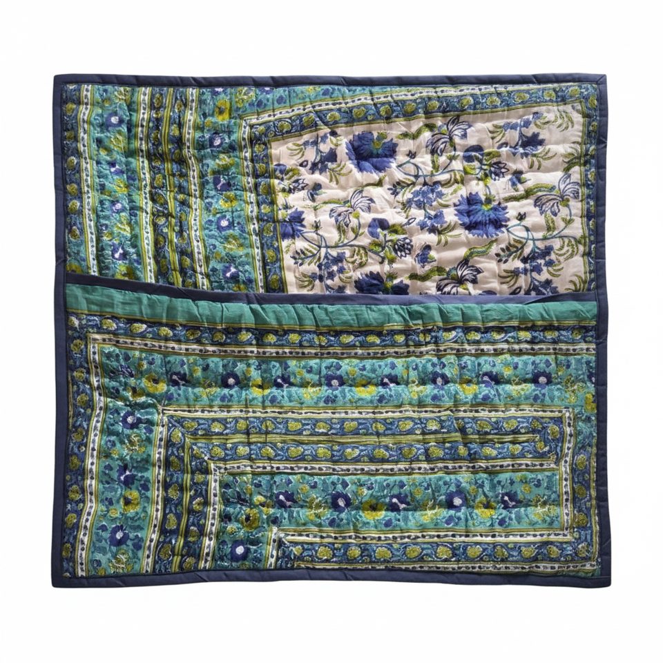 ผ้าห่มกันธาออร์แกนิกพิมพ์ลายบล็อก