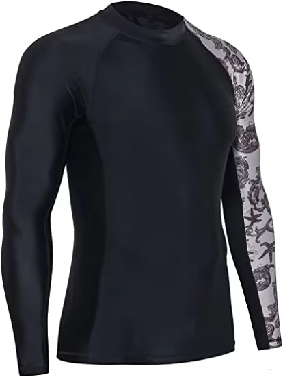เสื้อแรชการ์ดพิมพ์ลายคุณภาพดีที่สุด แขนยาว ผลิตจากผ้าสแปนเด็กซ์/โพลีเอสเตอร์ ปรับแต่งได้ แห้งเร็ว ป้องกันการเสียดสี สำหรับผู้ชาย ออกกำลังกาย ฟิตเนส