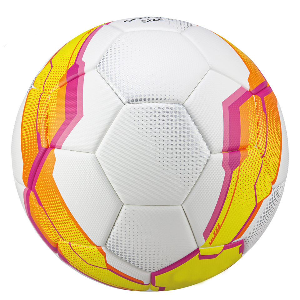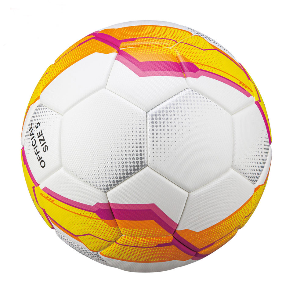 ลูกฟุตบอลคุณภาพดีที่สุด ขนาด 5 ทำจากหนัง PU เย็บด้วยเครื่องจักร เหมาะสำหรับทีมกีฬา เล่นกลางแจ้ง แข่งขัน และฝึกซ้อม
