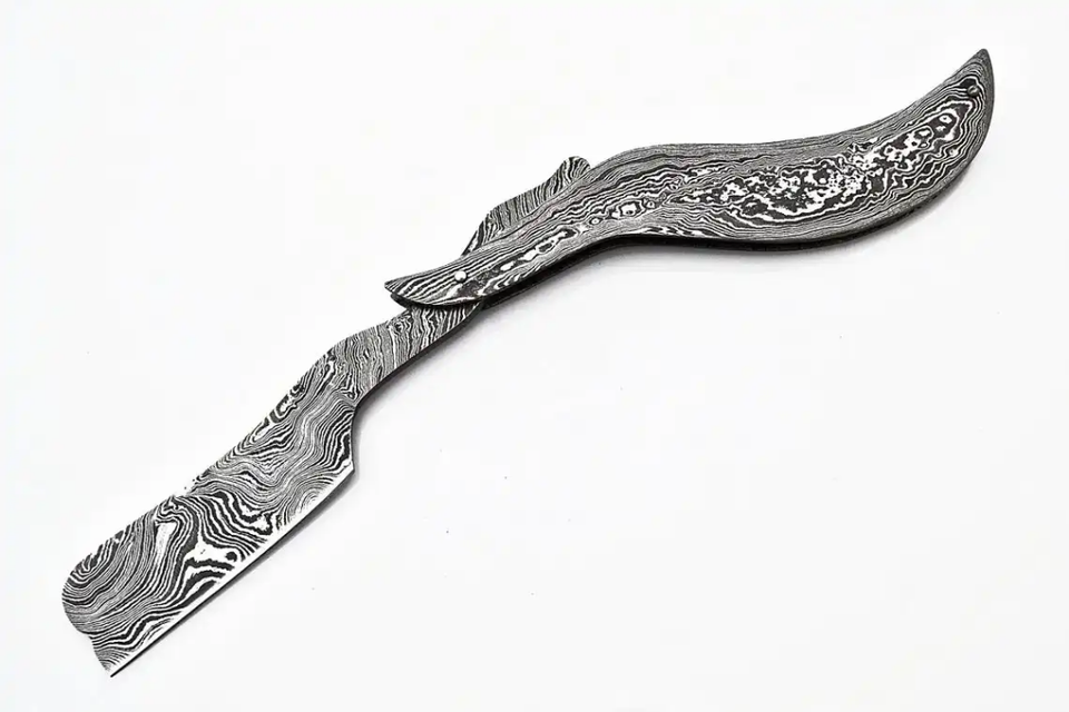 มีดโกนสำหรับช่างตัดผมแบบมืออาชีพมีดโกนทั้งใบมีดทั้งใบมีดเหล็กดามัสกัสทำด้วยมือปรับโลโก้ได้ตามต้องการ