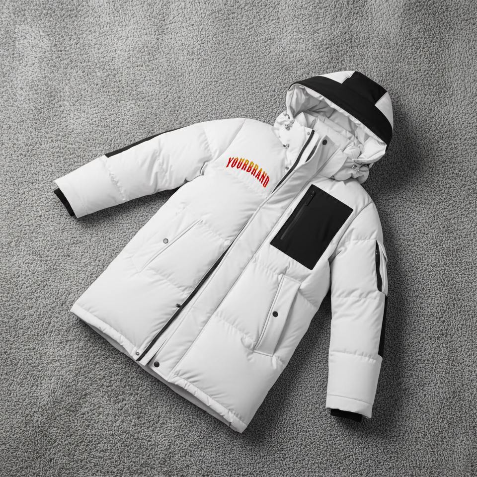 เสื้อโค้ทกันหนาวผู้ชายคุณภาพดีที่สุด แฟชั่นทันสมัย เงางาม มีฮู้ด กันน้ำ ไซส์ใหญ่ แบบพัฟเฟอร์ดาวน์แจ็คเก็ต บรรจุภัณฑ์แบบดรัมสั่งทำพิเศษ