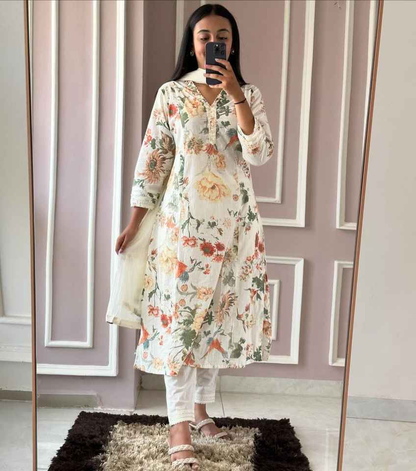 ชุด Kurti ผ้าฝ้ายแท้พิมพ์ลายแบบบล็อกกางเกงผ้าฝ้ายแท้มีสไตล์