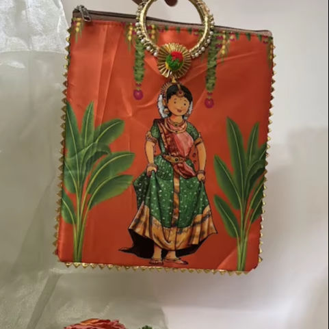 กระเป๋าถือ rajasthani jaipuri ทำจากผ้าไหมสไตล์ลำลองและกำไลข้อมือออกแบบสำหรับงานแต่งงาน