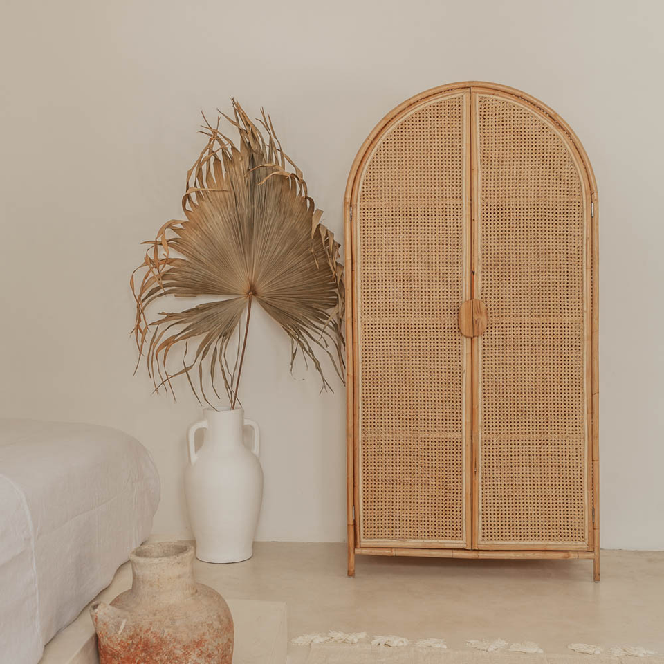 ตู้หวายทำมือพร้อมประตูคู่สำหรับเก็บเสื้อผ้าและจัดระเบียบตู้หวายธรรมชาติ