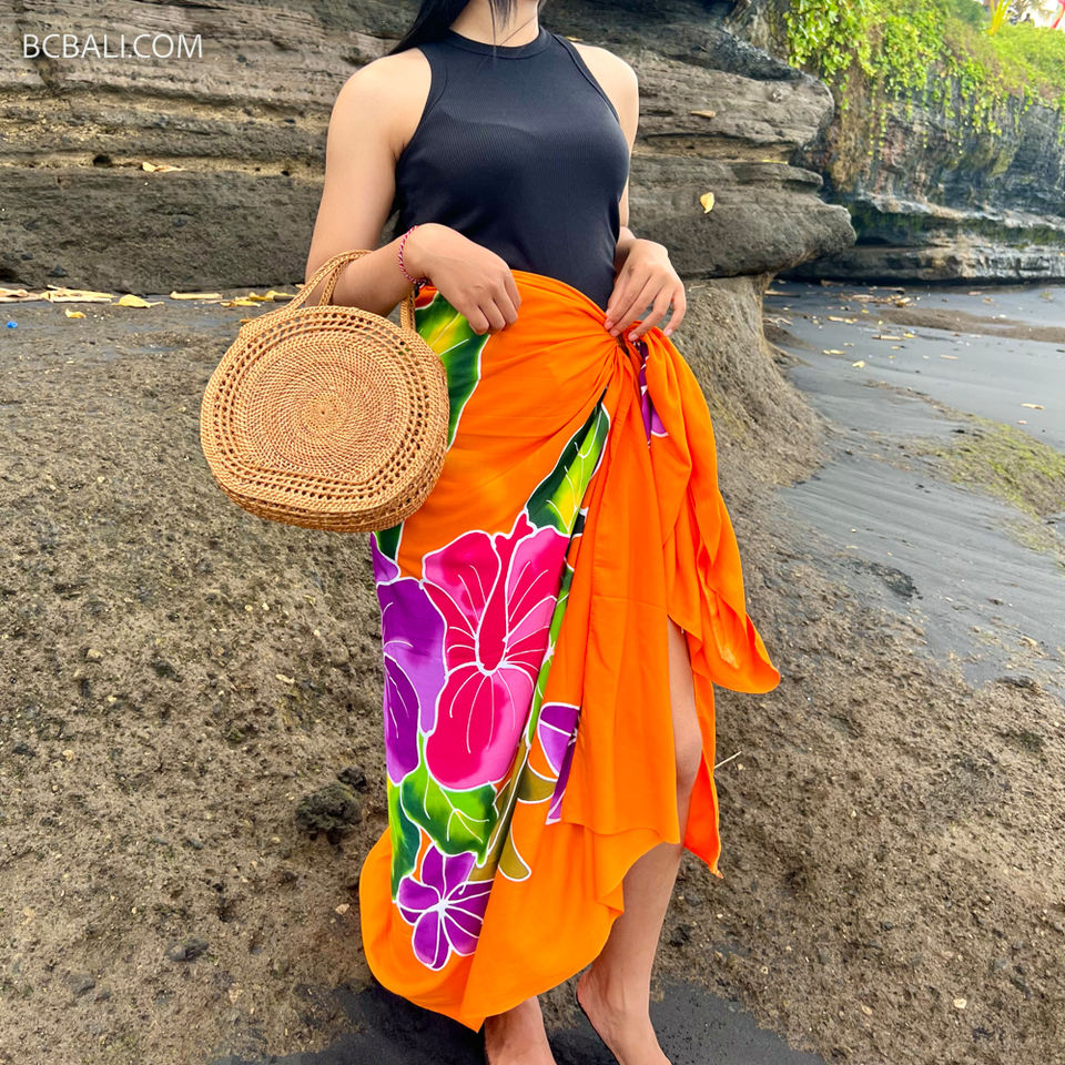ผ้าเรยอนผ้าโสร่งชุดใส่ชายหาดทาสีด้วยมือสำหรับผู้หญิงเสื้อผ้าสไตล์บาหลีเอเชียและหมู่เกาะแปซิฟิก