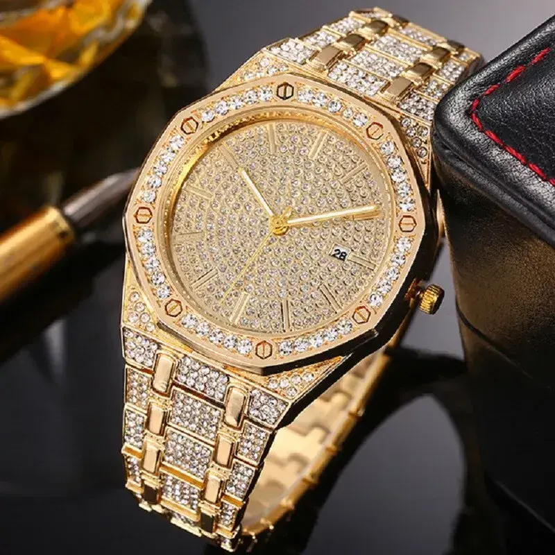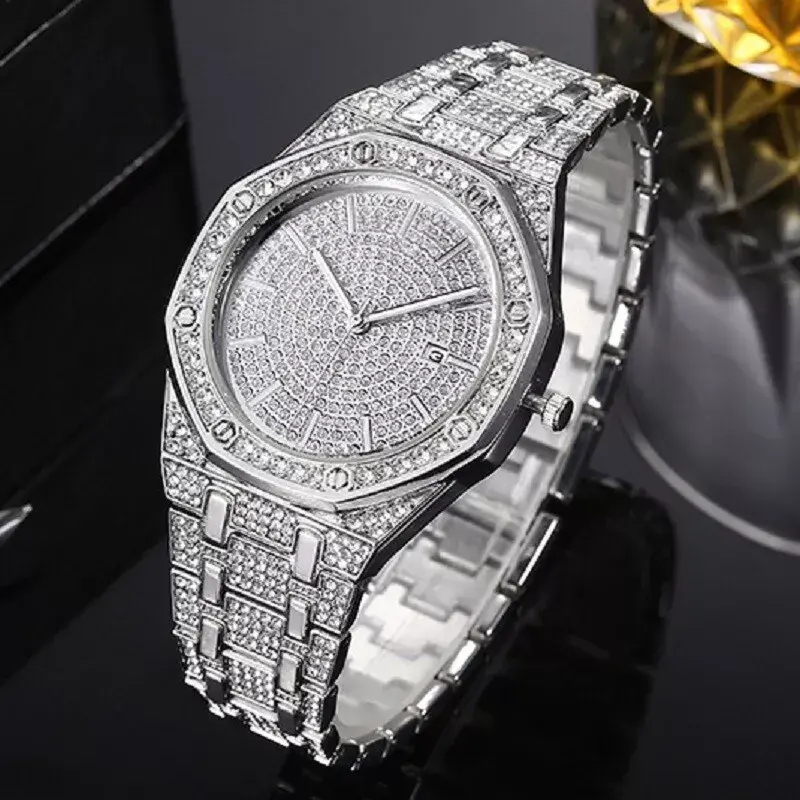 นาฬิกาข้อมือผู้ชายคุณภาพดีเยี่ยม ตัวเรือนสแตนเลสสตีล ประดับเพชรแท้ หน้าปัดแสดงผลแบบอนาล็อก สายหนัง หรูหรา จำหน่ายจำนวนมาก