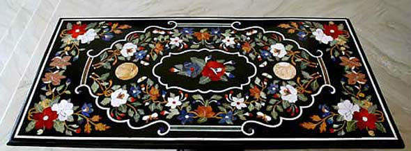 ท็อปโต๊ะหินอ่อนสีดำลายดอกไม้คลาสสิก รูปทรงสี่เหลี่ยมผืนผ้า งานแฮนด์เมด คุณภาพดี ใช้สำหรับตกแต่งบ้าน ราคาถูก