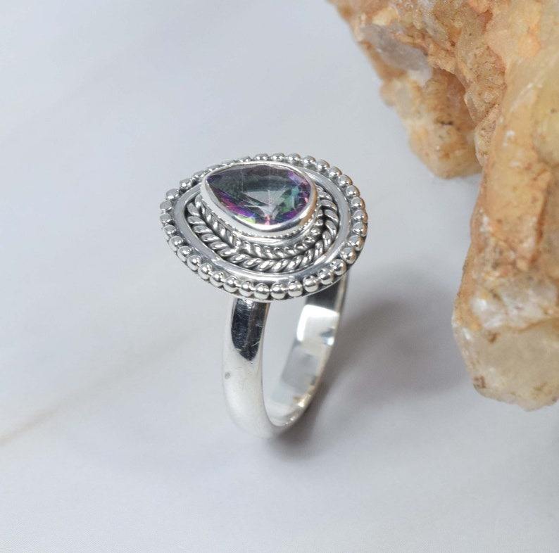 เครื่องประดับแหวนลึกลับบุษราคัม925แข็งพลอยธรรมชาติทำด้วยมือแหวนประทับ925เงินสเตอร์ลิง