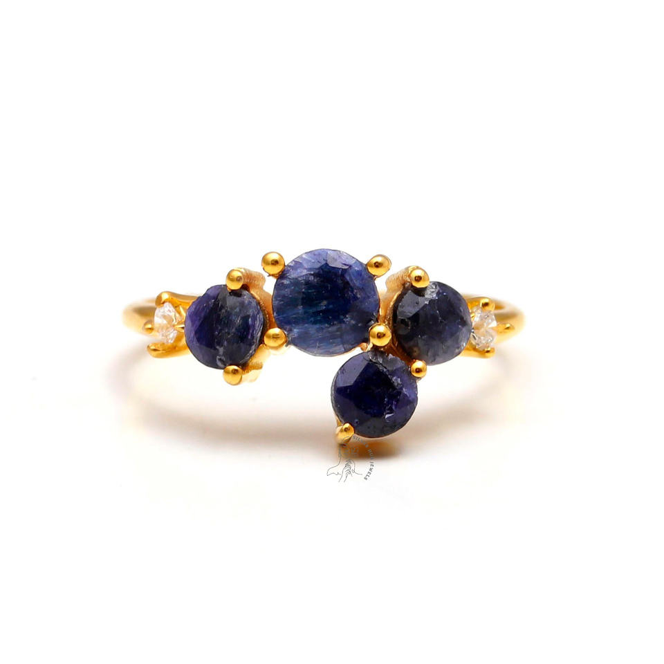 แหวน kyanite อัญมณี kyanite ธรรมชาติสีฟ้า925แข็งเครื่องประดับทำด้วยมือเงินสเตอร์ลิง925แหวนประทับ