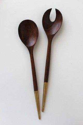 ช้อนและส้อมจานชามสลัดทำจากไม้พร้อมด้ามจับดีไซน์ไม้