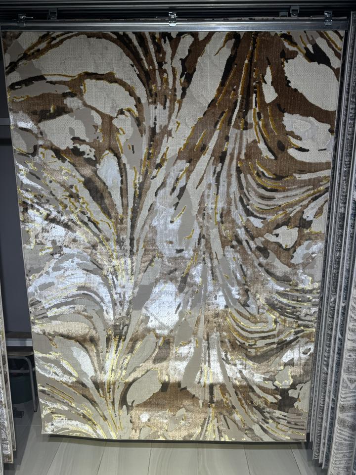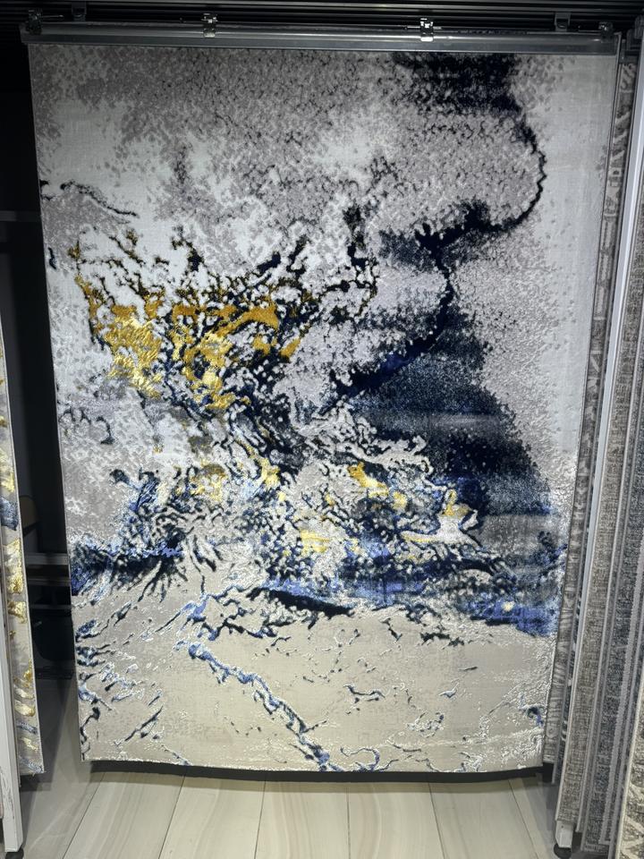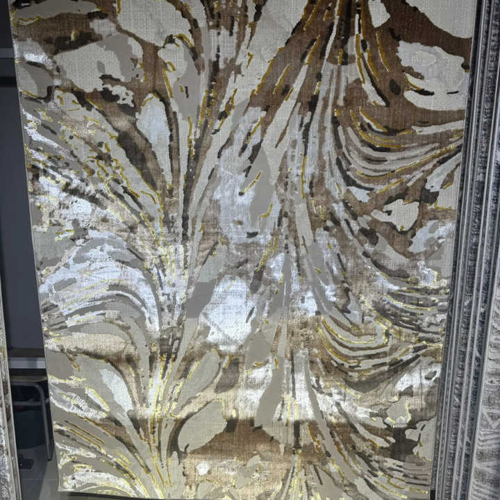 พรมปูพื้นโพลีเอสเตอร์ลายกอลเดนมูนพรมปูพื้นแบบแอบสแตรกพรมขนาดใหญ่บุนวมกันลื่นใช้ในบ้าน