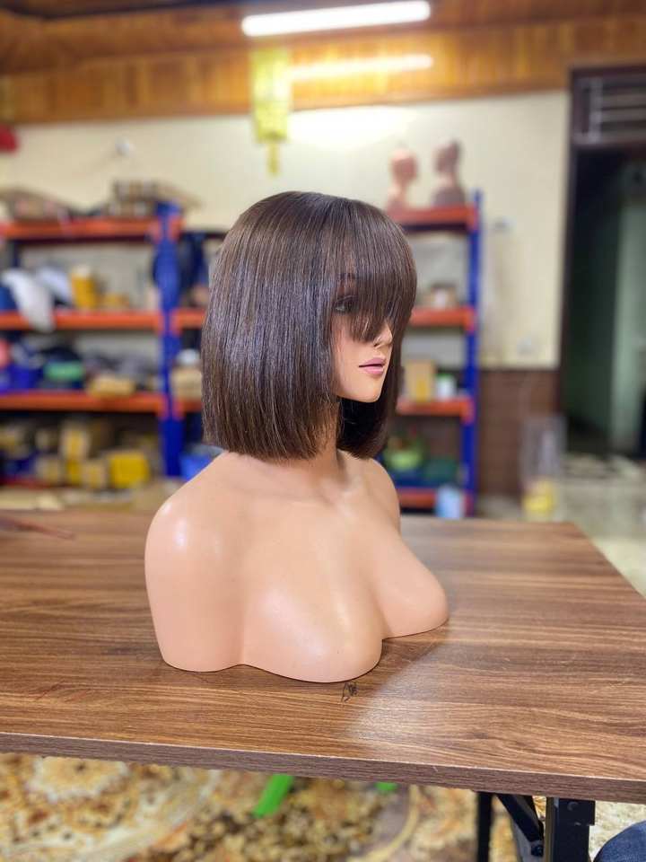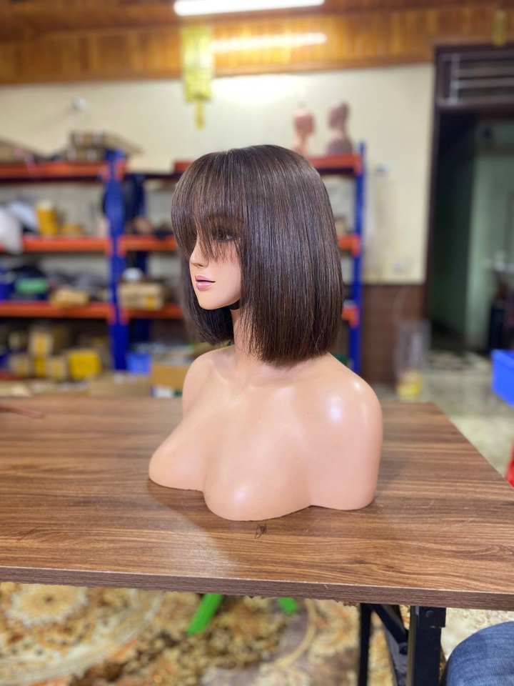 ผมต่อบ๊อบบ๊อบบ๊อบแบบมีลูกไม้สีน้ำตาลธรรมชาติสำหรับต่อผมคนแบบเดี่ยวผม13X4