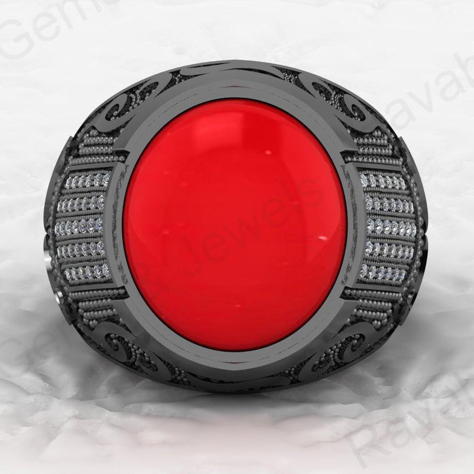 แหวนสำหรับผู้ชายจากนักออกแบบชาวตุรกีแหวนเงินแท้925เข้มขนาด13X15มม. สีแดงปะการังสันติภาพ
