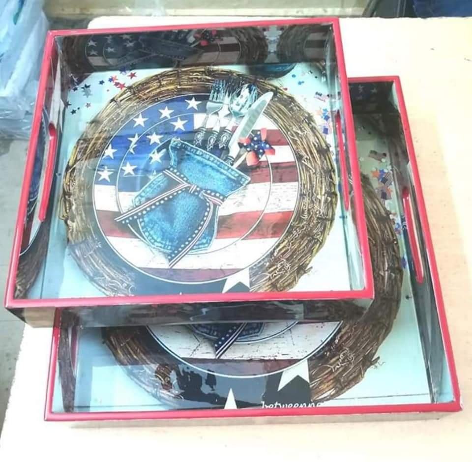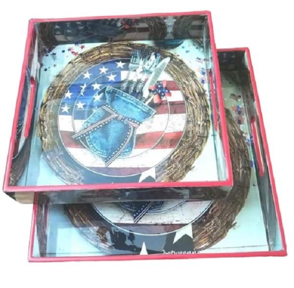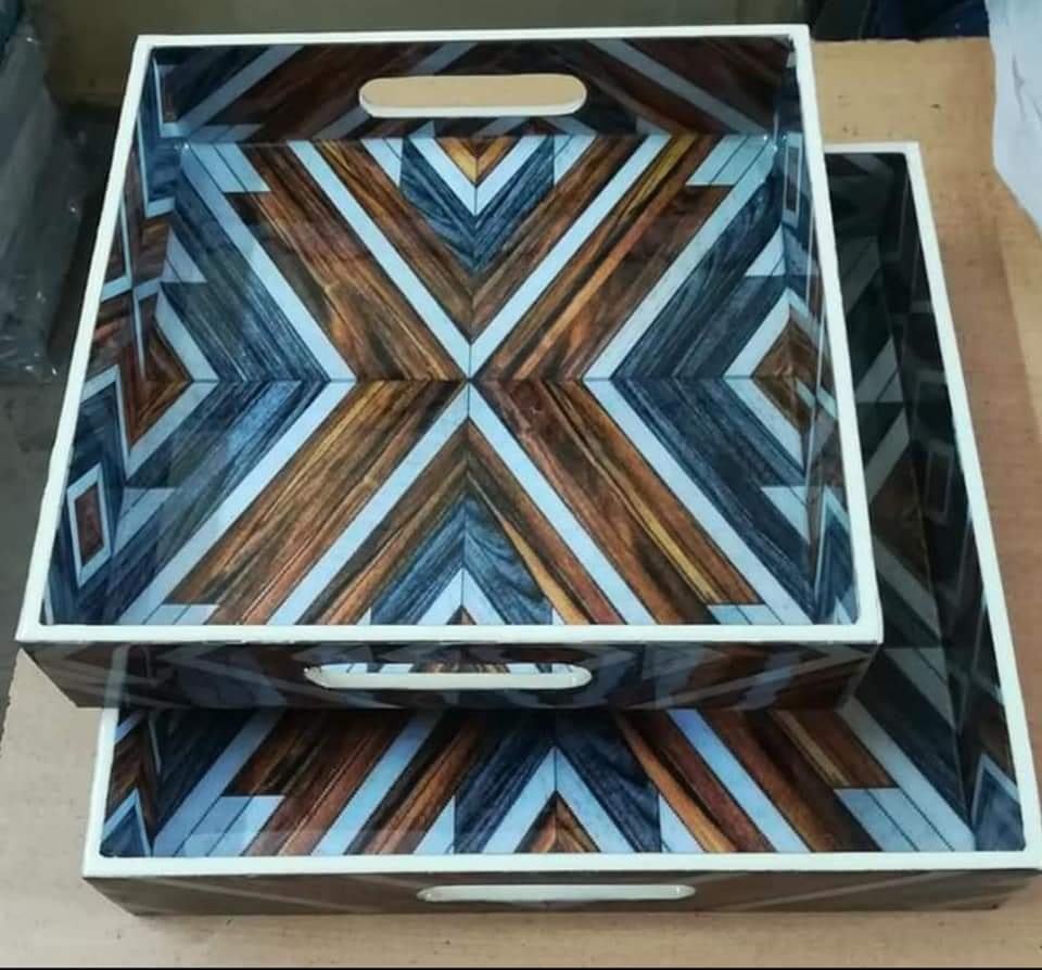 ถาดเสิร์ฟไม้เคลือบเงาพิมพ์ลายสี่เหลี่ยมคุณภาพดีเยี่ยม ราคาถูกและใหม่ เหมาะสำหรับเสิร์ฟอาหาร