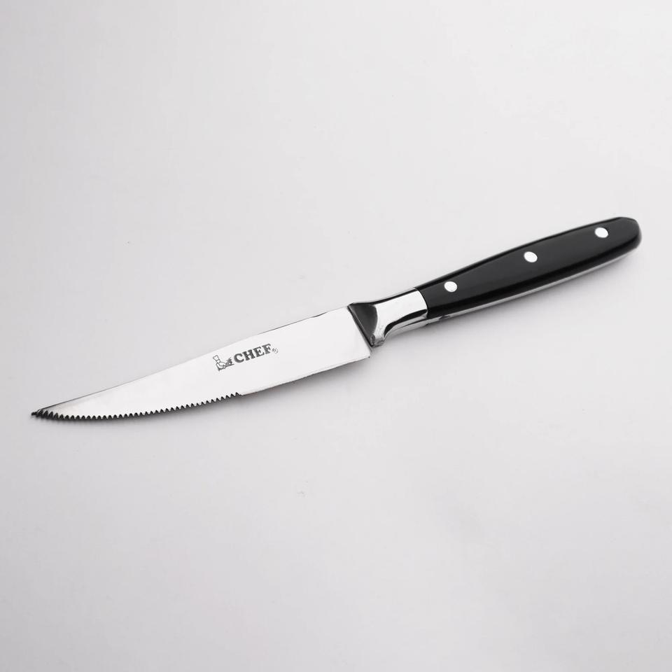 ชุดมีดสเต็กพ่อครัวสแตนเลสคุณภาพดีที่สุดมีดทำครัวแบบอเมริกันด้ามจับไม้อะคริลิกขอบหยักขนาดเล็ก