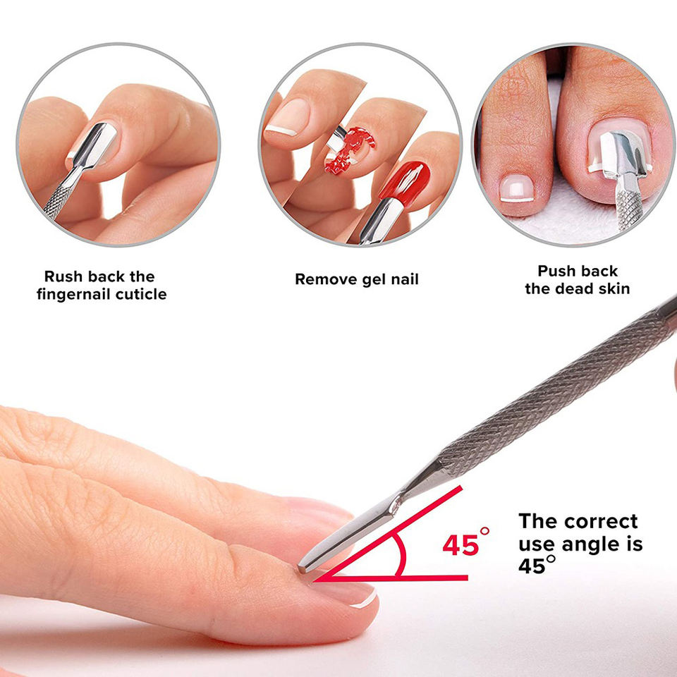 ที่ดันเล็บหนังกำพร้าสแตนเลสสตีลใช้ซ้ำได้อุปกรณ์ทำเล็บสองหัว