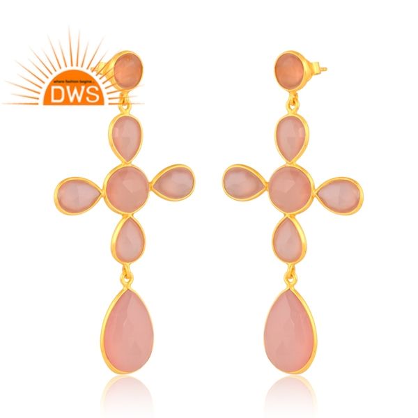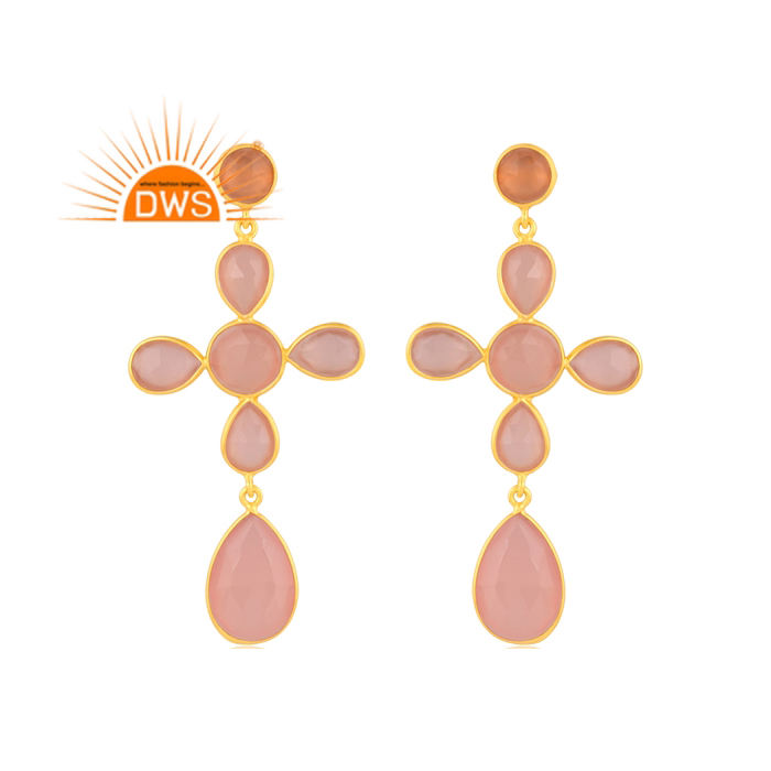 ต่างหูพลอยคาลซิโดนีชุบทอง18K ประดับโรสเตอร์สีเงินสเตอร์ลิง