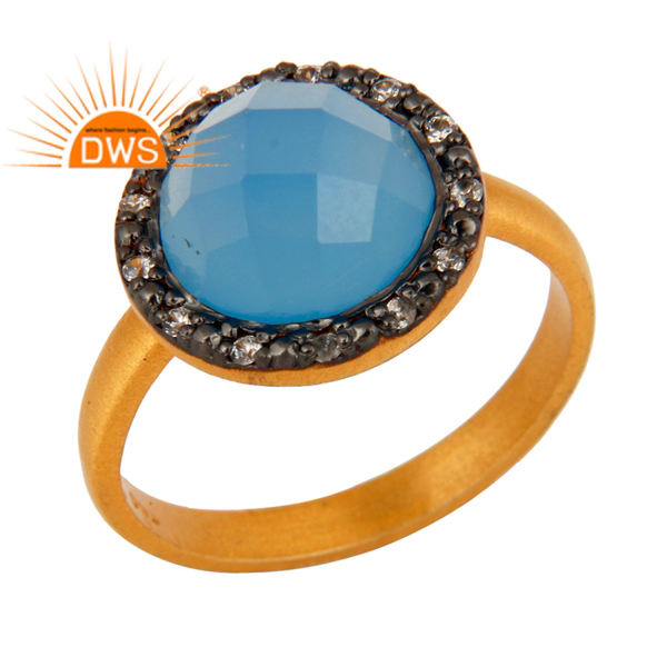 แหวนพลอยคาลซิโดนีธรรมชาติชุบทอง18K ชุบทอง18K คุณภาพดีที่สุดแหวนวางซ้อนกันได้อัญมณีสังเคราะห์สีฟ้า