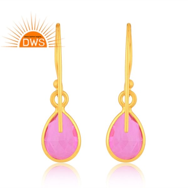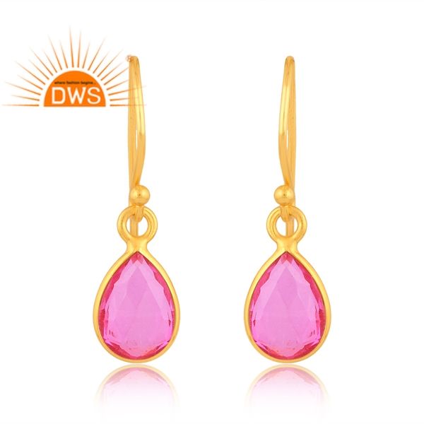 คุณภาพที่ดีที่สุดเงินสเตอร์ลิง18K ชุบทอง Doublelet Kunzite ควอตซ์อัญมณีห้อยต่างหูผู้ผลิตเครื่องประดับที่ดี