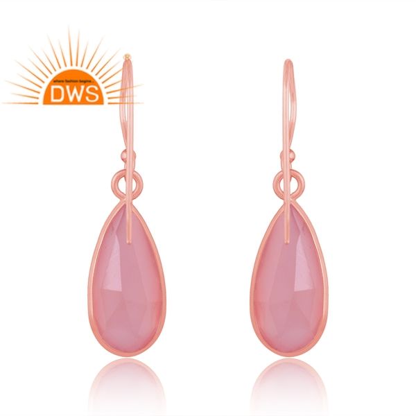 ต่างหูโอปอลสีชมพูธรรมชาติชุบทองโรสเตอร์เงินสเตอร์ลิงต่างหูแบบห้อยอัญมณีจากผู้ผลิต