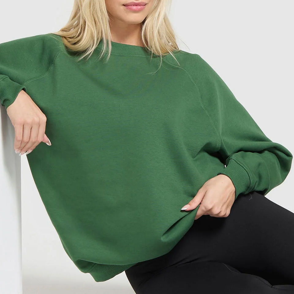 เสื้อสเวตเชิ้ตโอเวอร์ไซส์ลำลองสำหรับผู้หญิงคุณภาพดีที่สุดสำหรับฤดูหนาว สีพื้น โลโก้ด้านหน้า ผลิตโดยมืออาชีพ