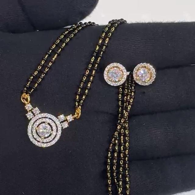 ชุด mangalsutra พร้อมต่างหูสำหรับผู้หญิงชุดอัญมณีประดับทองแบบดั้งเดิมและมีสไตล์