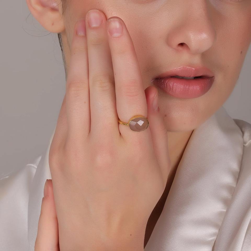 แหวนมูนสโตนสีเทามีสไตล์สำหรับการทำสมาธิทางจิตวิญญาณเครื่องประดับอินเดียสำหรับงานแต่งงานผู้จัดจำหน่ายชั้นนำ