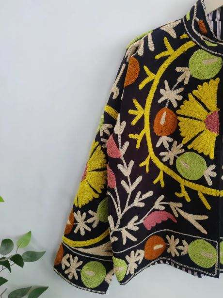 Suzani แจ็กเก็ตปักสไตล์โบฮีเมียนสำหรับเจ้าสาวเสื้อคลุมฤดูหนาวเสื้อแจ็คเก็ตสำหรับงานแต่งงานหรือเทศกาลของขวัญคริสต์มาส