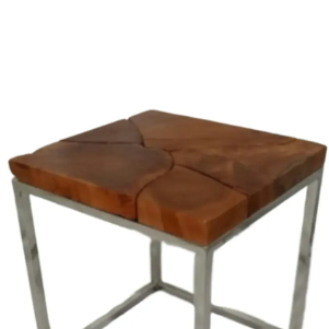 เก้าอี้รากไม้สักโต๊ะข้างดีไซน์ทันสมัยขาสแตนเลสพับได้สำหรับใช้ในร่มกลางแจ้งสำหรับโรงพยาบาลรับประทานอาหาร