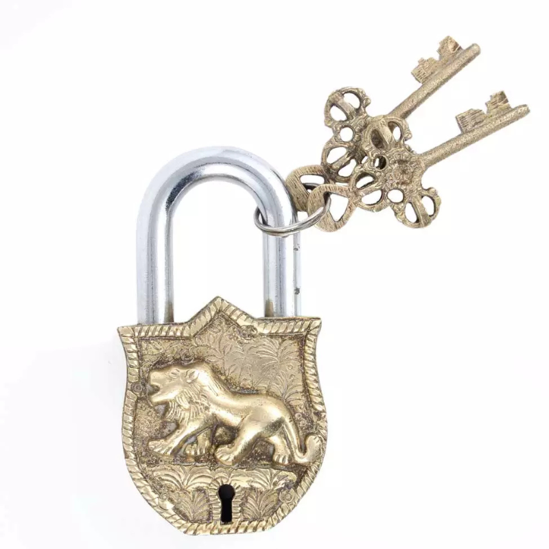 ตัวล็อคโบราณทำด้วยมือทำจากทองเหลืองรูปเสือมี2ปุ่มขัดเงากันน้ำ