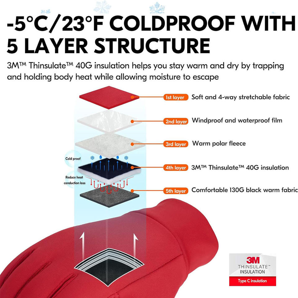 ถุงมือแข่งรถกันลื่นโพลีเอสเตอร์กันความร้อนซับในให้ความอบอุ่นในฤดูหนาว
