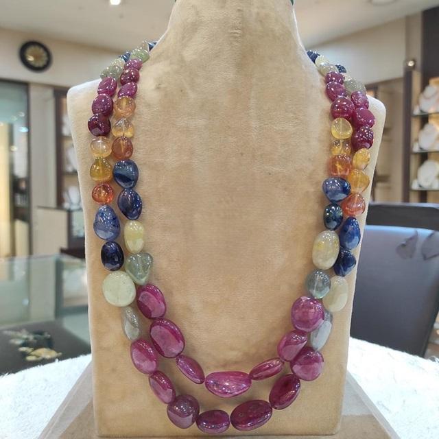 ชุดสร้อยคอแซฟไฟร์มรกตประดับทับทิมแท้2แถวสำหรับงานหมั้นงานแต่งงานของผู้หญิงและเด็กผู้หญิง