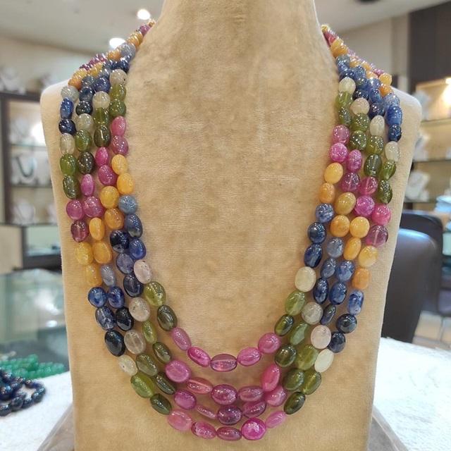 เซ็ตสร้อยคอแซฟไฟร์แท้4แถวสำหรับผู้หญิงและเด็กผู้หญิงงานหมั้นงานแต่งงาน