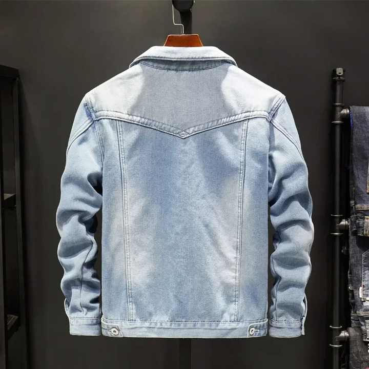 แจ็กเก็ตผ้ายีนส์สำหรับผู้ชายเสื้อแจ็คเก็ตผ้าเดนิมน้ำหนักเบาดีไซน์เป็นเอกลักษณ์