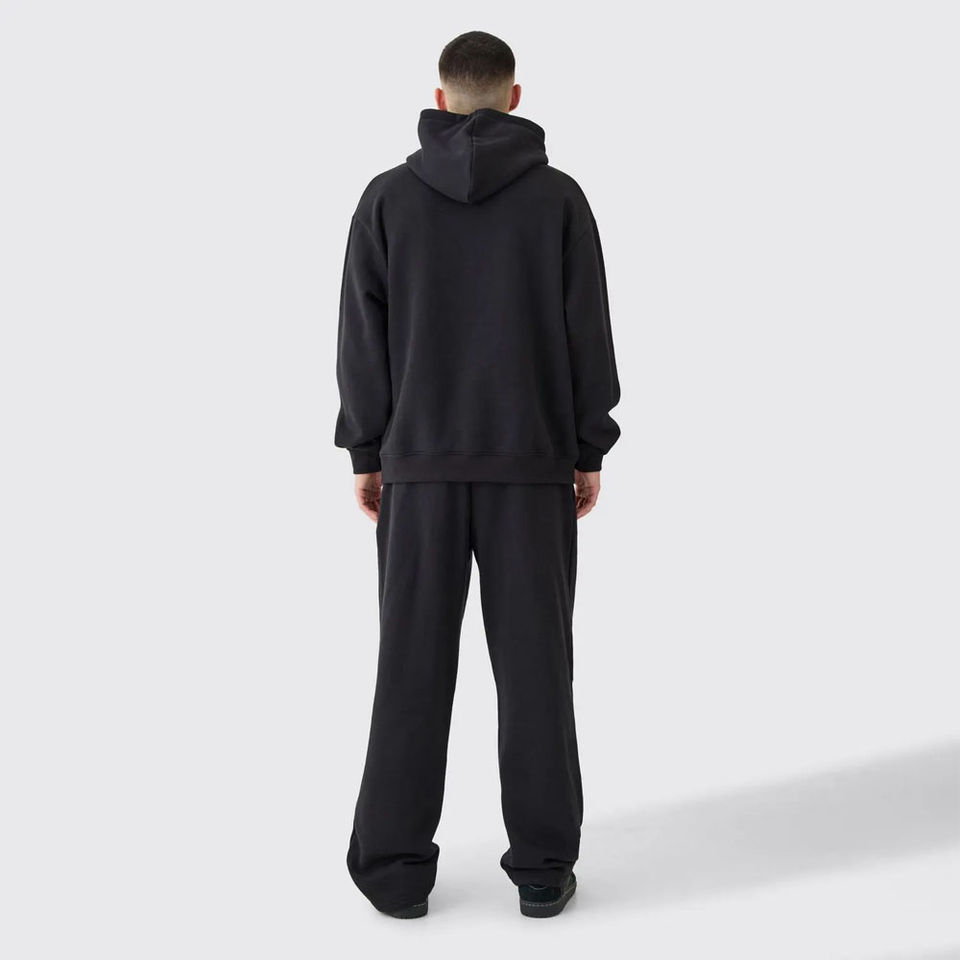 ชุดวอร์มผู้ชายแบบซ้อนกันแขนยาวมีฮู้ดและกางเกงพิมพ์ลายสกรีนลาย