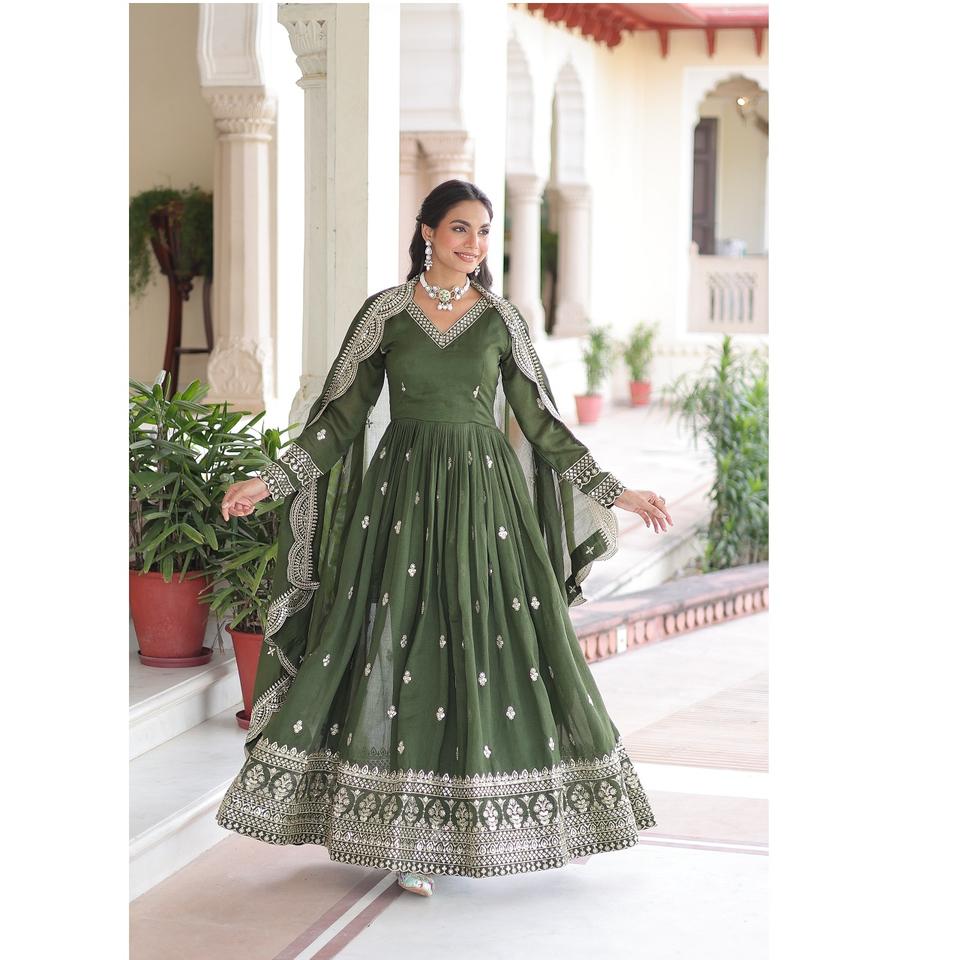 ชุดเดรส Anarkali ผ้าไหมวิชิตราคุณภาพดีเยี่ยม พร้อมงานปักเลื่อม สำหรับผู้หญิง เหมาะสำหรับงานพิเศษและงานแต่งงาน