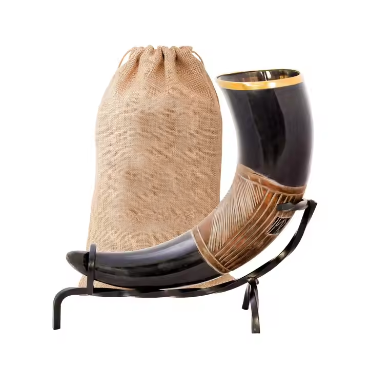 ฮอร์นดื่มไวกิ้งโบราณแกะสลักขัดสำหรับปาร์ตี้ฮอร์นดื่มธรรมชาติ