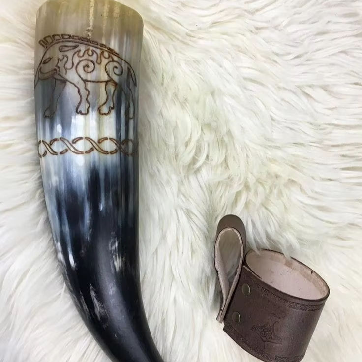 แก้วเบียร์ทรงกรวยสำหรับดื่มแบบไวกิ้งดีไซน์ใหม่ฝีมือสูงสำหรับงานปาร์ตี้