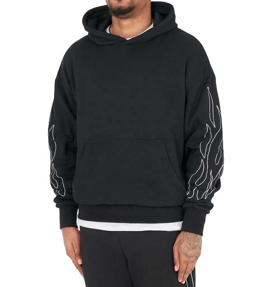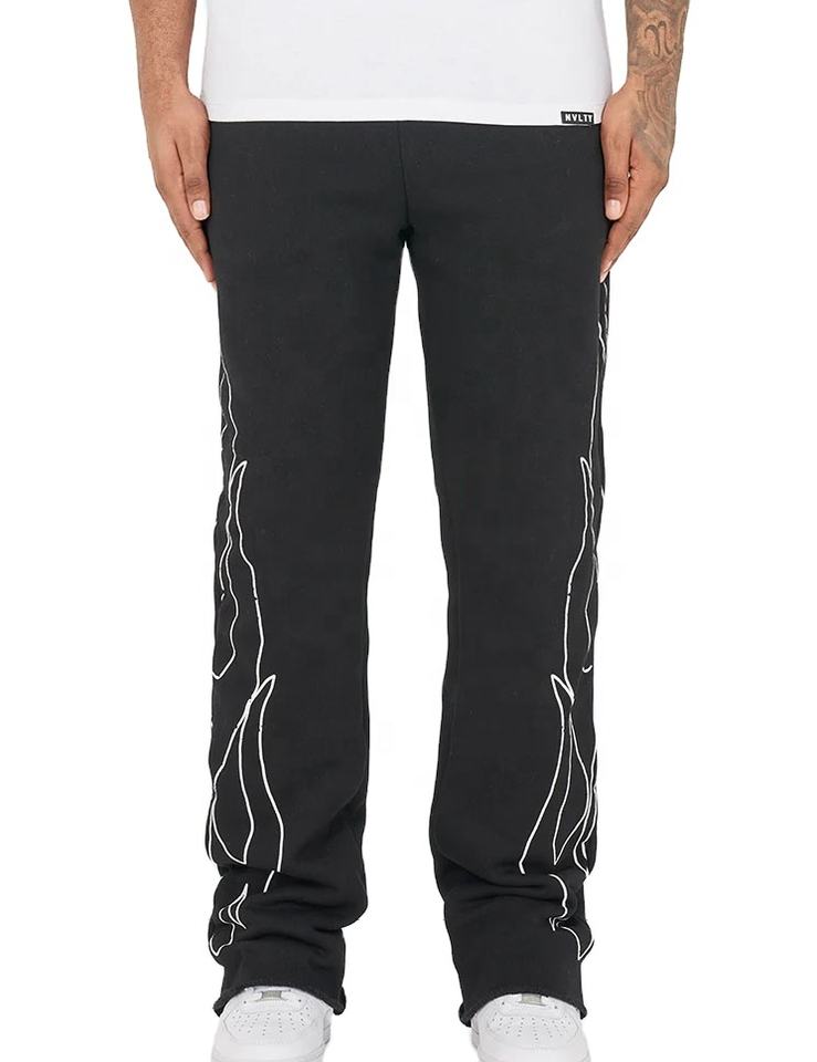 ชุดวอร์มผ้าฟลีซสำหรับผู้ชายชุดวอร์มแบบสวมศีรษะมีฮู้ดกางเกงขาบานสำหรับผู้ชาย