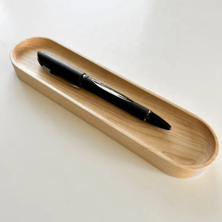 Best Quality Walnut Maple Cherry Wood Pen Tray with Carved Nautical Style Pencil Tray Crochet Hook Tray Featuring Salt Lamp