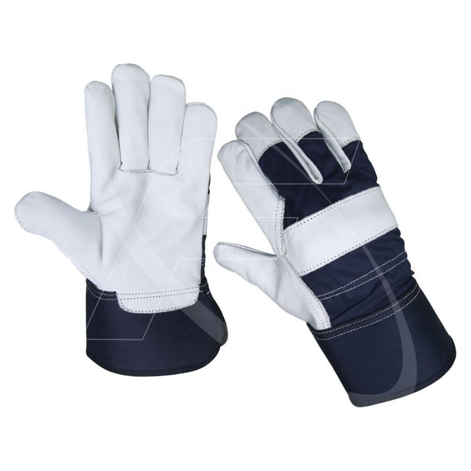 ถุงมือทำงานหนังวัวเม็ดสีขาวถุงมือนิรภัย