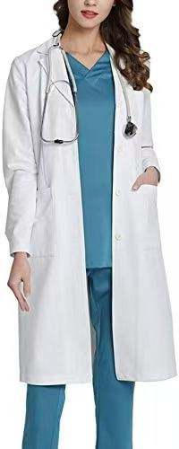 เสื้อโค้ทแลปสีขาวแขนยาวสำหรับผู้ชายและผู้หญิงเสื้อโค้ทห้องแล็บหนาสำหรับร้านเสริมสวย