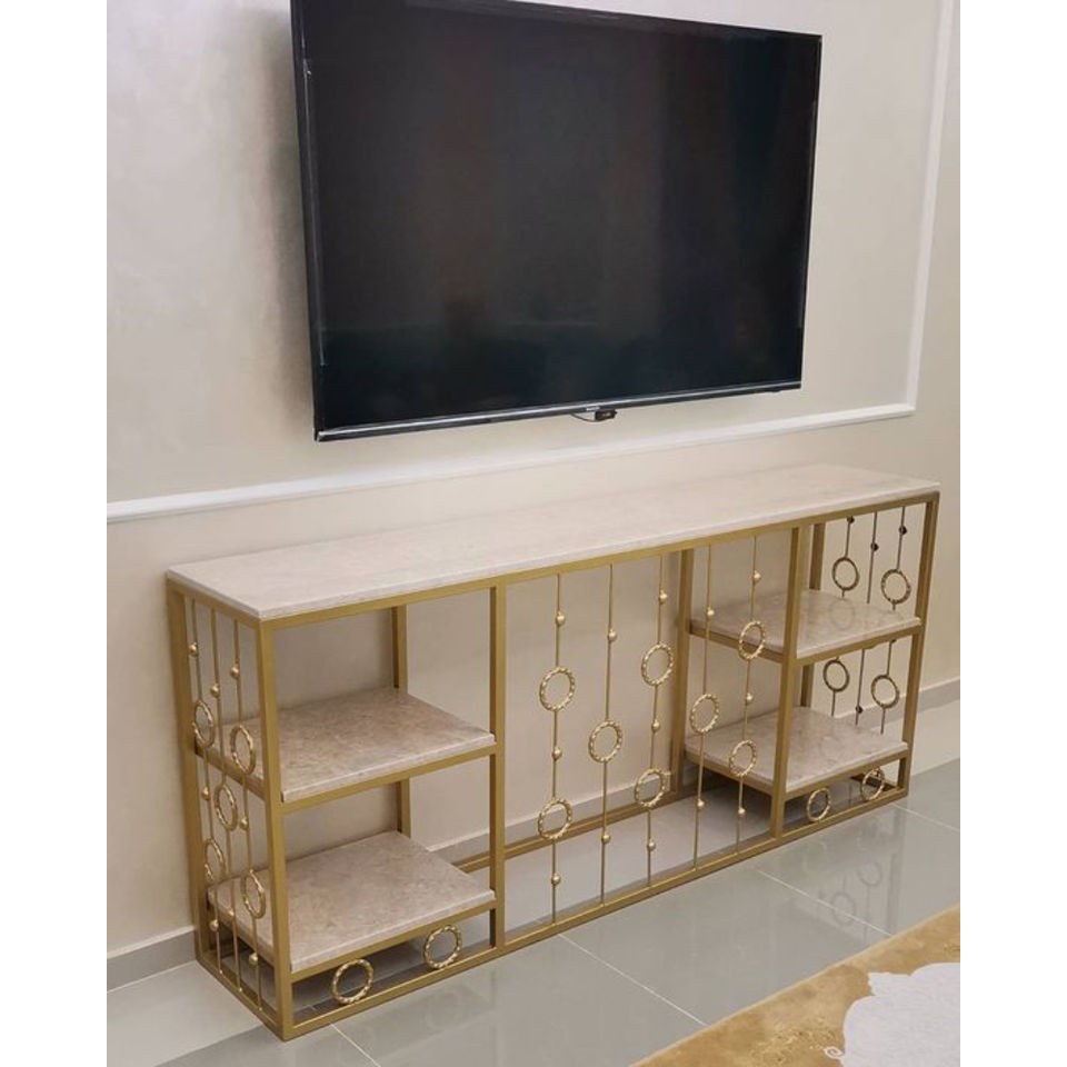 โต๊ะคอนโซลหรูหราคุณภาพสูงสุด หินอ่อนสีขาวคุณภาพเยี่ยม พร้อมโครงโลหะชุบทองคุณภาพสูง เหมาะสำหรับบ้าน โรงแรม ห้องนั่งเล่น