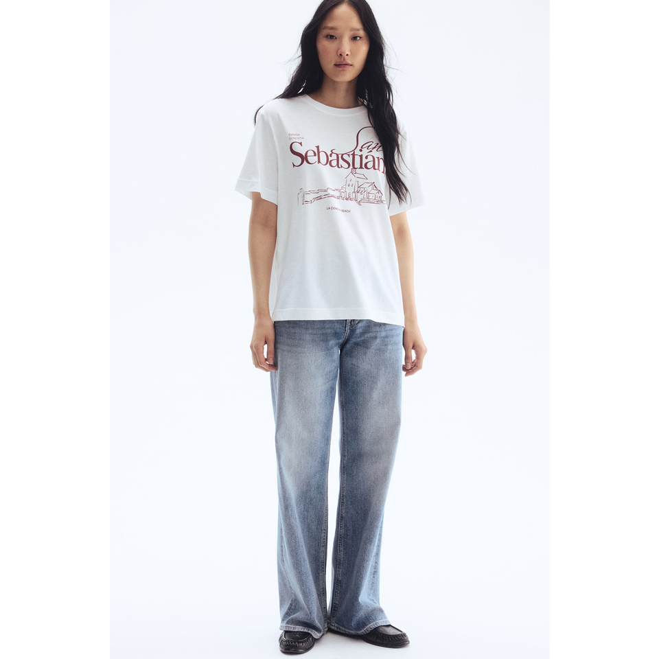 เสื้อยืดพิมพ์ลายสีขาวสำหรับผู้หญิงเสื้อยืดสตรีทแวร์ผ้าคอตตอนพิมพ์ลายสไตล์สตรีทแวร์จากบังคลาเทศสำหรับฤดูร้อน