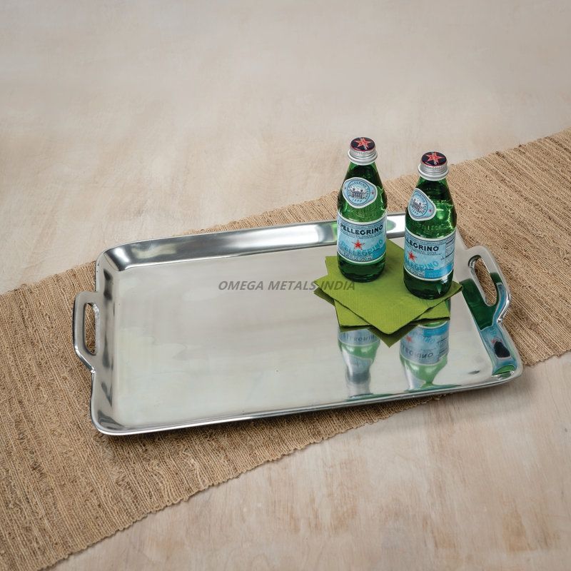 ถาดเสิร์ฟทรงสี่เหลี่ยมสีขาวพร้อมดีไซน์เพรียวบางและพื้นผิวเรียบเนียนเหมาะสำหรับการตกแต่งบ้านและความบันเทิงที่ทันสมัย